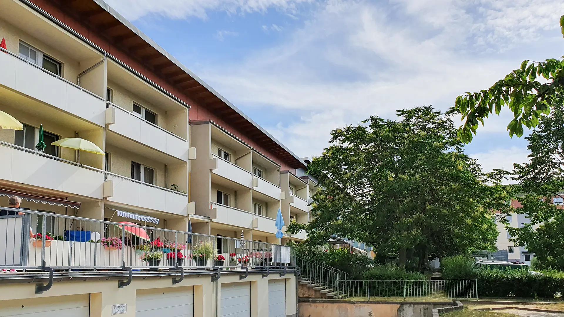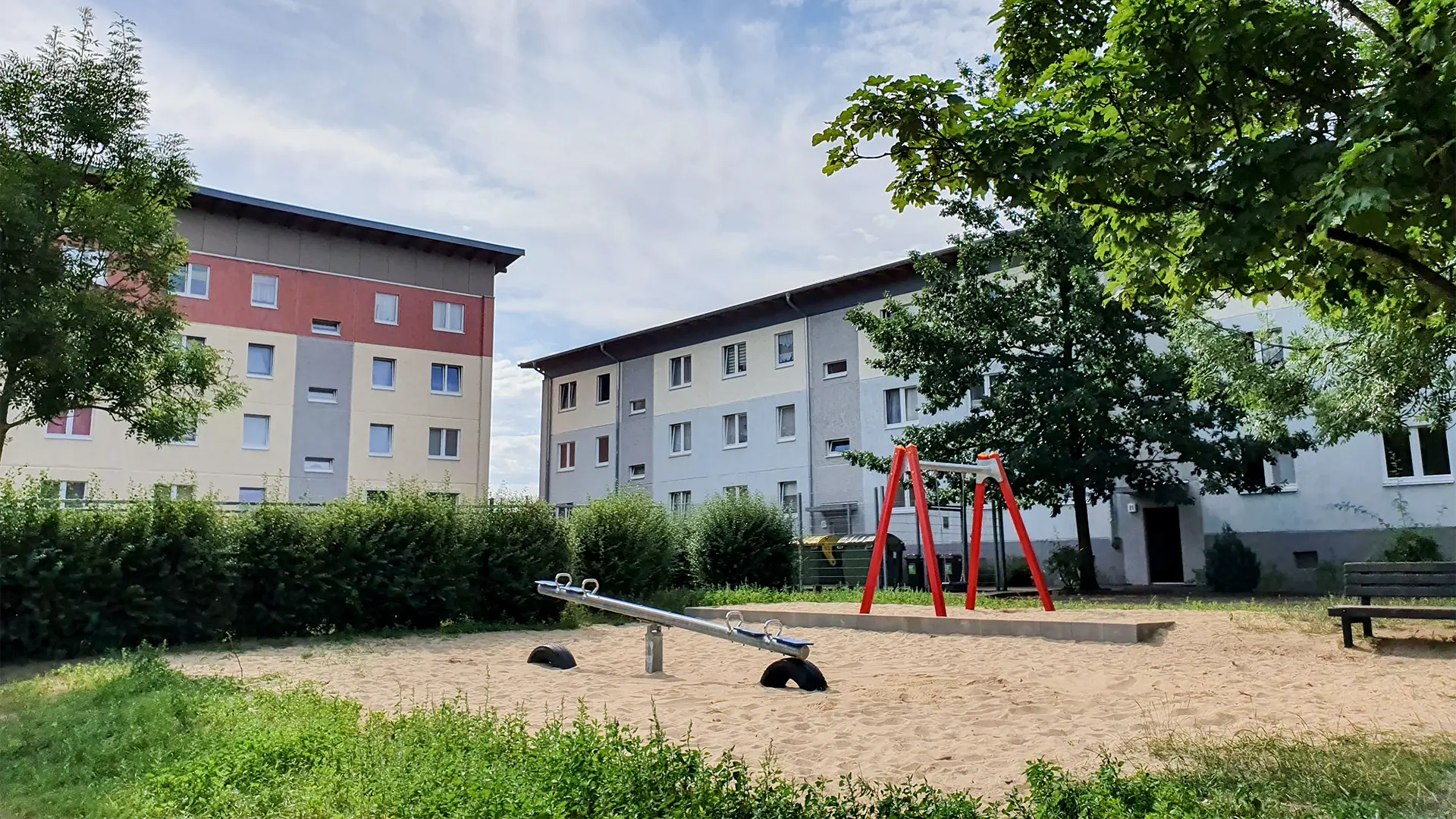 Durch Teilrückbau und Modernisierungen haben wir das Wohnumfeld in den letzten Jahren erheblich aufgelockert und die Außenanlagen neugestaltet. Begrünte Innenhöfe mit Parkplätzen, Spielplätzen und Freizeitflächen schaffen zusätzlichen Mehrwert.